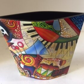 LAV084-Lacquer Inlay Wood Vase- Large Moon Shape