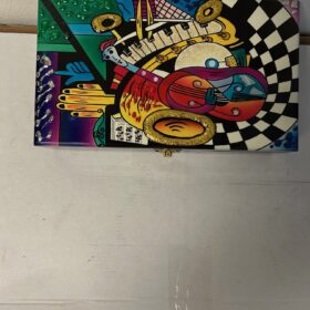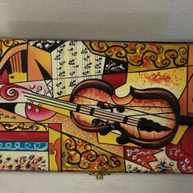 LAV088-Lacquer Inlay Wooden Vase with Picaso Painting Large Moon Shape