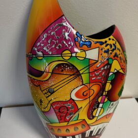 LAV041-Lacquer Inlay Wooden Flowers case with Picaso Art Painting Pointed Mouth