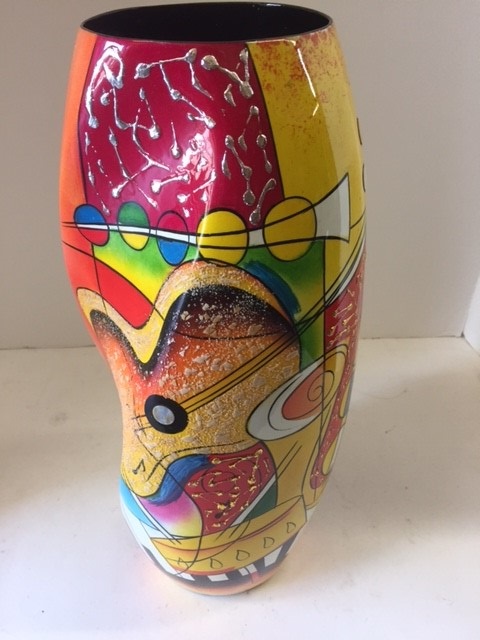 Lacquer Inlay Wooden Vase– Hand Painted Picaso Art Design.