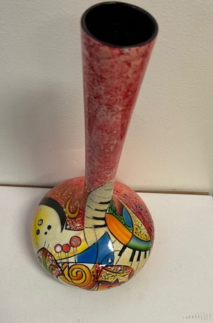 LAV014-Lacquer Inlay Wooden Vase with Picaso Art Painting