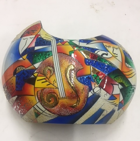 Lacquer Inlay Wooden Vase . Hand Painted with Picaso Art .