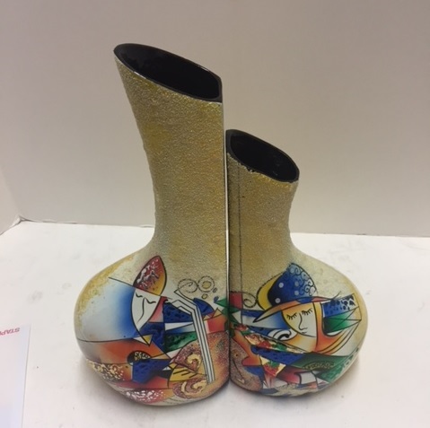 LAV016-Lacquer Inlay Wood Vase with Picaso Art Painting