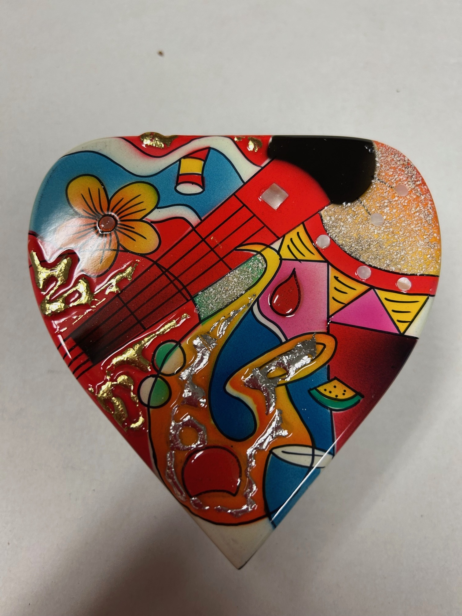 LAJ005-Lacquer Inlay Jewelry Box-5″ Heart Shape