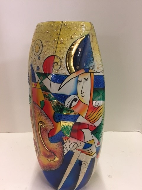 LAV012-Lacquer Inlay Wooden Vase with Lady Face Art Painting
