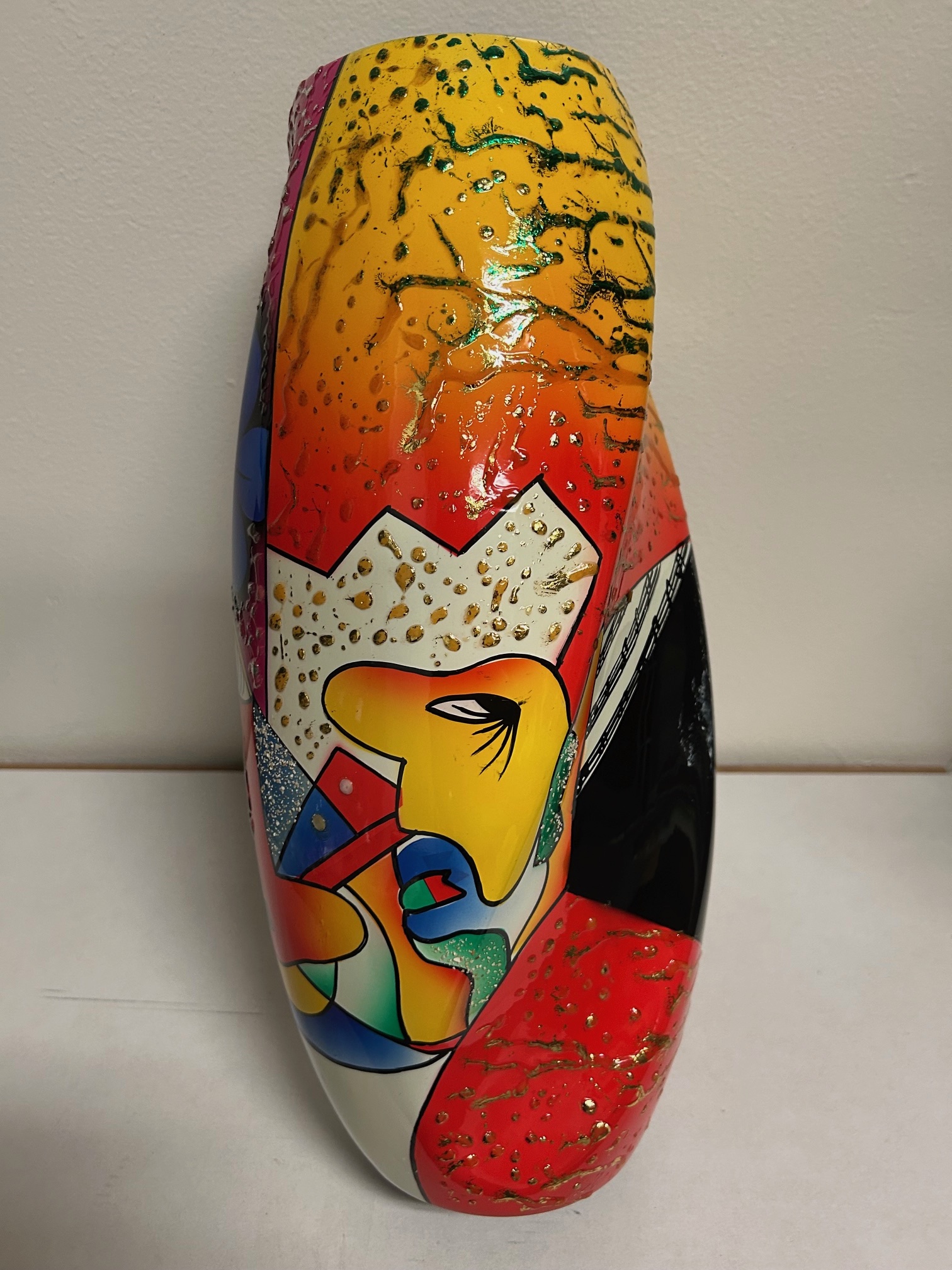 LAV017-Lacquer Inlay Wooden Vase with Picaso Art Paint