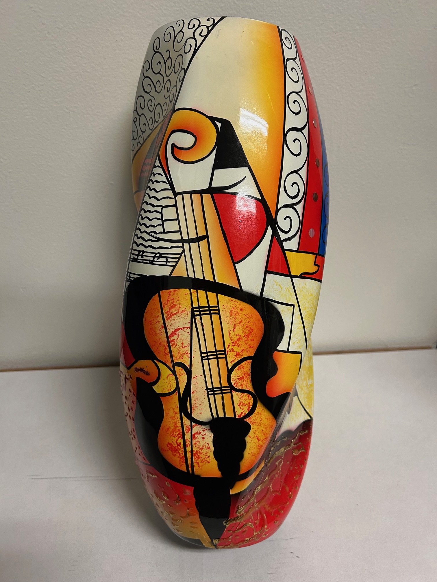 LAV018-Lacquer Inlay Wooden Vase with Picaso Art Painting