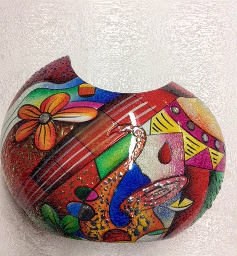LAV033-Lacquer Inlay Wooden Vase with Picaso Art Painting Moon Style