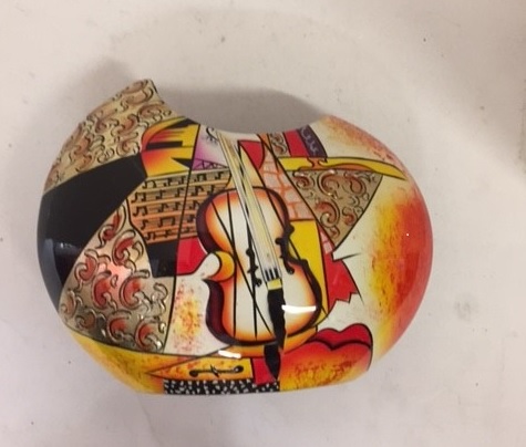 LAV038-Lacquer Inlay Wood Vase with Picaso Art Painting Moon Style