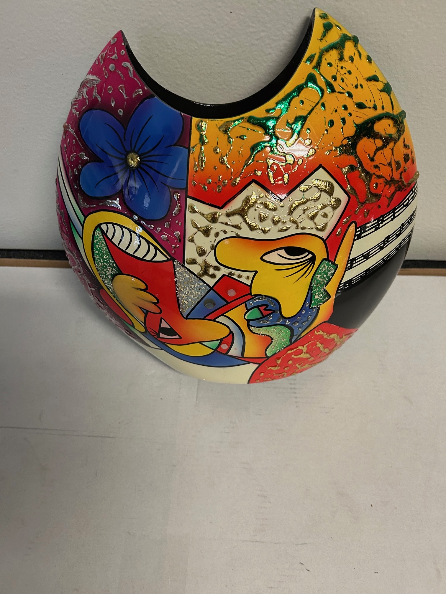 LAV081-Lacquer Inlay Wooden vase with Picaso Art Painting Large Moon Shape