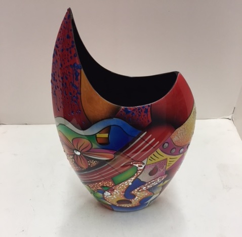 LAV044-Lacquer Inlay Wooden Vase with Picaso Art Painting Pointed Mouth