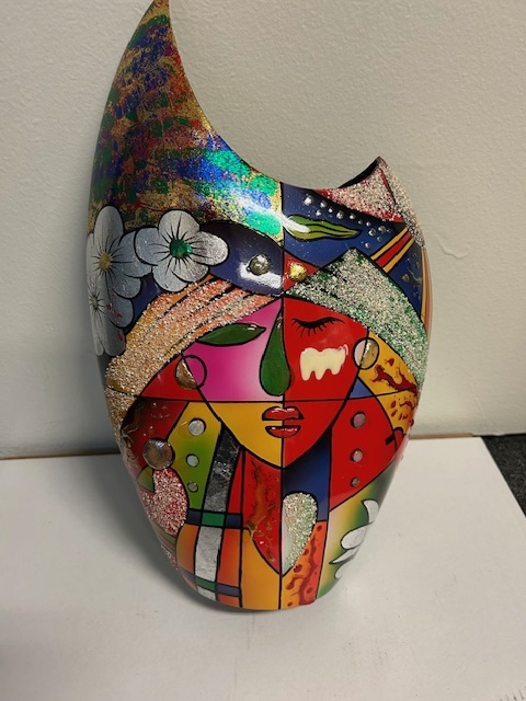 LAV046-Lacquer Inlay Wooden Vase with Picasso Art Painting Pointed Mouth